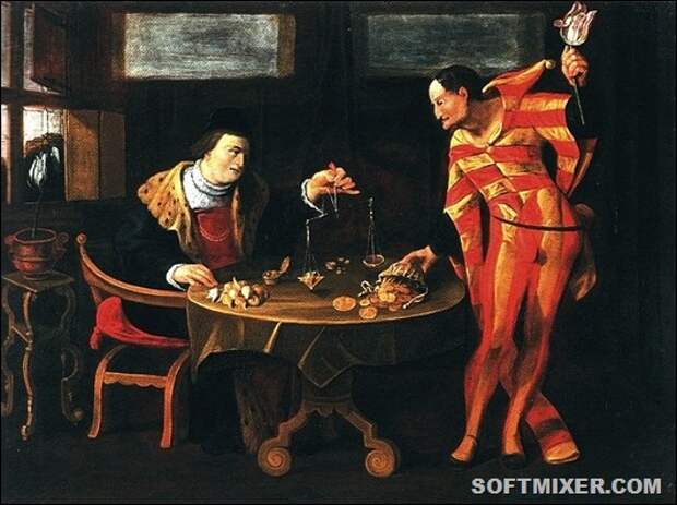 Торговец и тюльпаноман. Картина-карикатура середины XVII века.