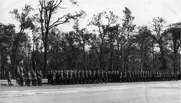 Сводный полк 248-й стрелковой дивизии на Шарлоттенбургском шоссе в берлинском парке Тиргартен. Численность сводного полка составляла 2000 человек. Командовал полком Герой Советского Союза подполковник Г. М. Ленев