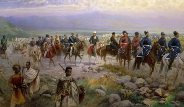 Посольство в Абиссинию. Поляков В.В. В центре на белом коне граф Николай Леонтьев с абиссинскими орденами