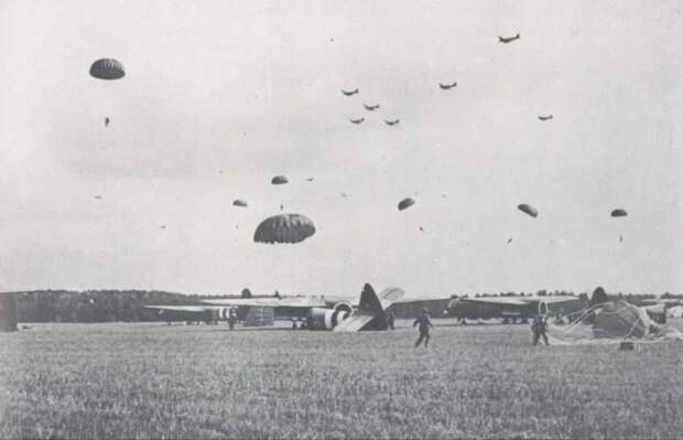 Для немцев появление в небе союзных парашютистов стало настоящим сюрпризом. Вот как описывает это в книге «Воздушно-десантные войска во Второй мировой войне» Юрий Ненахов.