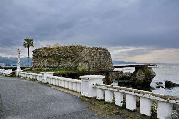 В начале второй половины 20-го века советский историк Вианор Панджович Пачулиа начал исследование дна у сухумского берега. В результате этих изысканий были обнаружены остатки стен и круглой башни, диаметр которой равнялся трём метрам, сложенной из римского кирпича. Непосредственно в башенной стене, толщина которой равнялась полутора метрам, были найдены просветы, служившие бойницами. Исследования вскоре вскрыли и другие следы римских укреплений.