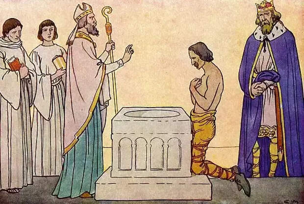 Кроме того, по условиям соглашения предводитель викингов Гутрум согласился принять христианство, где там же, в Уэдморе (графство Сомерсет) он был крещен, а Альфред, чтобы еще больше закрепить договор, стал его крестным отцом...
