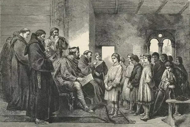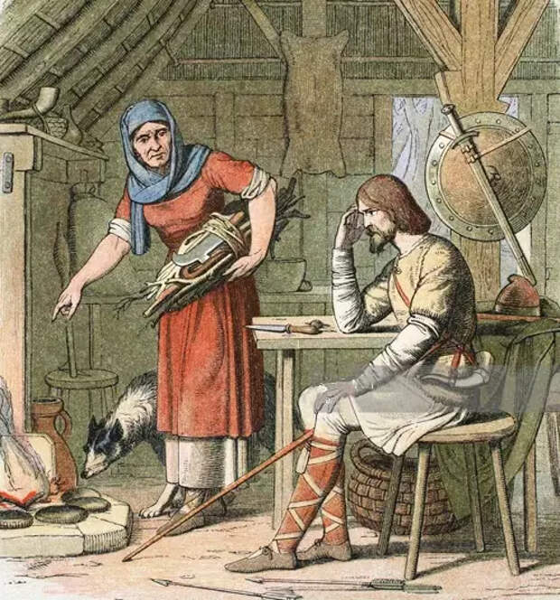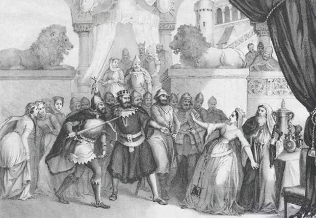 При дворе английского короля Альфреда. Литография из архива, изданная в 1852 году