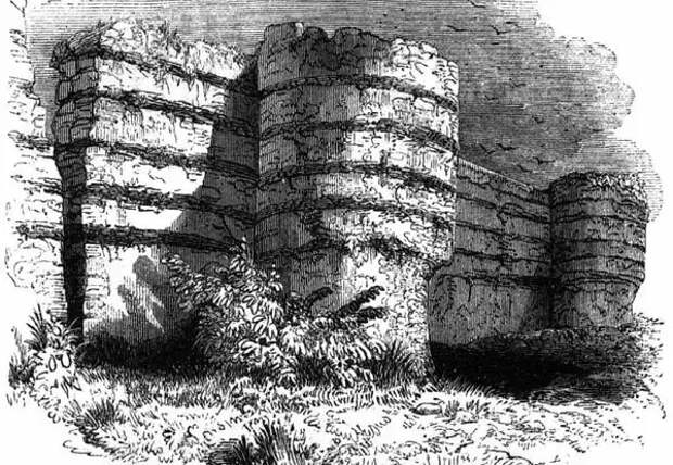 Гравюра XIX века с изображением стен бурга. Норфолк, Англия