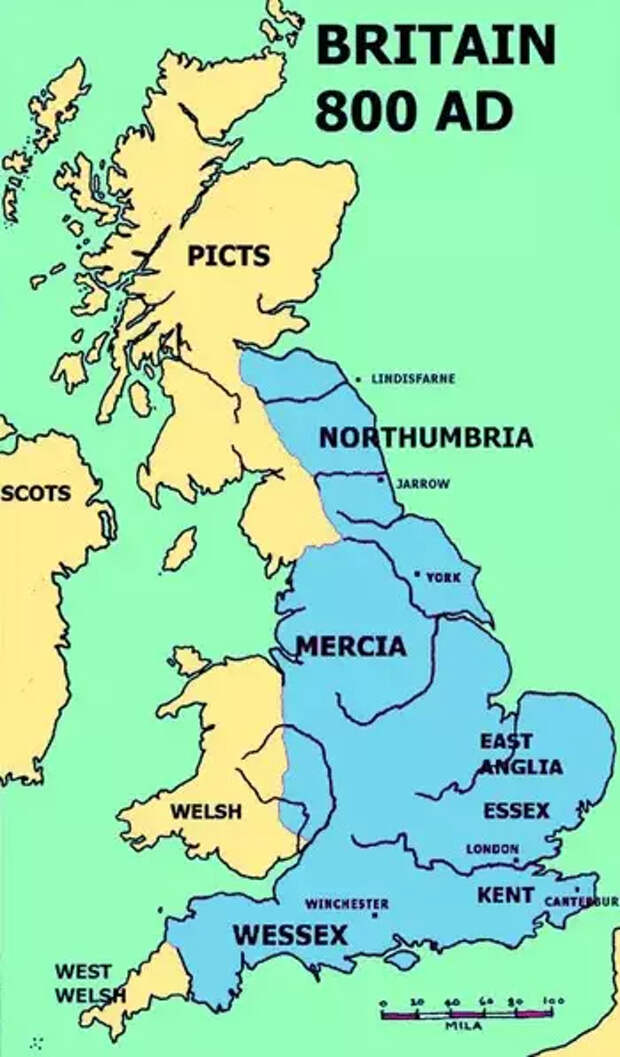 За относительно небольшой период англосаксонских военных вторжений в Британию остров был разбит на большое количество микроскопических «королевств», каждое из которых имело своего «короля» или «суб-короля», которые на самом деле были не более чем племенными вождями.