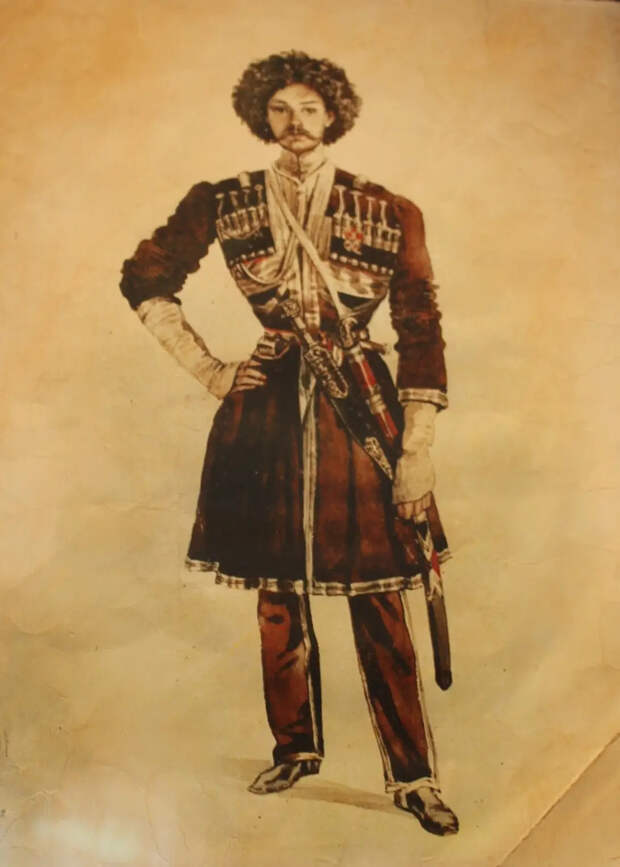 Чрезвычайно популярным у офицеров на Кавказе был «черкесский костюм», о чем в своих произведениях писали и М. Лермонтов, и Л. Толстой. Прежде всего, это была «черкеска», само название которой говорит нам о том, что впервые русские люди увидели ее на черкесах. Представляла она собой кафтан с открытой грудью, без воротника, с полами длиной до колена или середины голени. На груди черкески по обе стороны, вкось, нашивались напатронники – специальные кармашки для газырей – серебряных трубочек, в которых хранились заранее отмеренные заряды пороха.